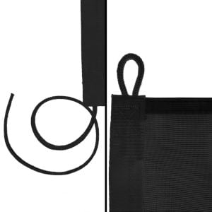 We werken de vlag af met een witte of zwarte band en haken in dezelfde kleur. Of met een lus met een koordje. Deze optie wordt vaak gebruikt bij kleinere vlaggen. Je bepaalt zelf of deze afwerking aan de linker- of de rechterzijde komt. Vlaggen worden enkelzijdig full colour bedrukt en hierdoor is de achterzijde van de vlag in spiegelbeeld.
